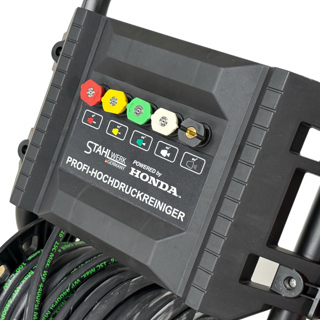 • 5 snelwissel-nozzles (0°, 15°, 25°, 40°, zeepnozzle)